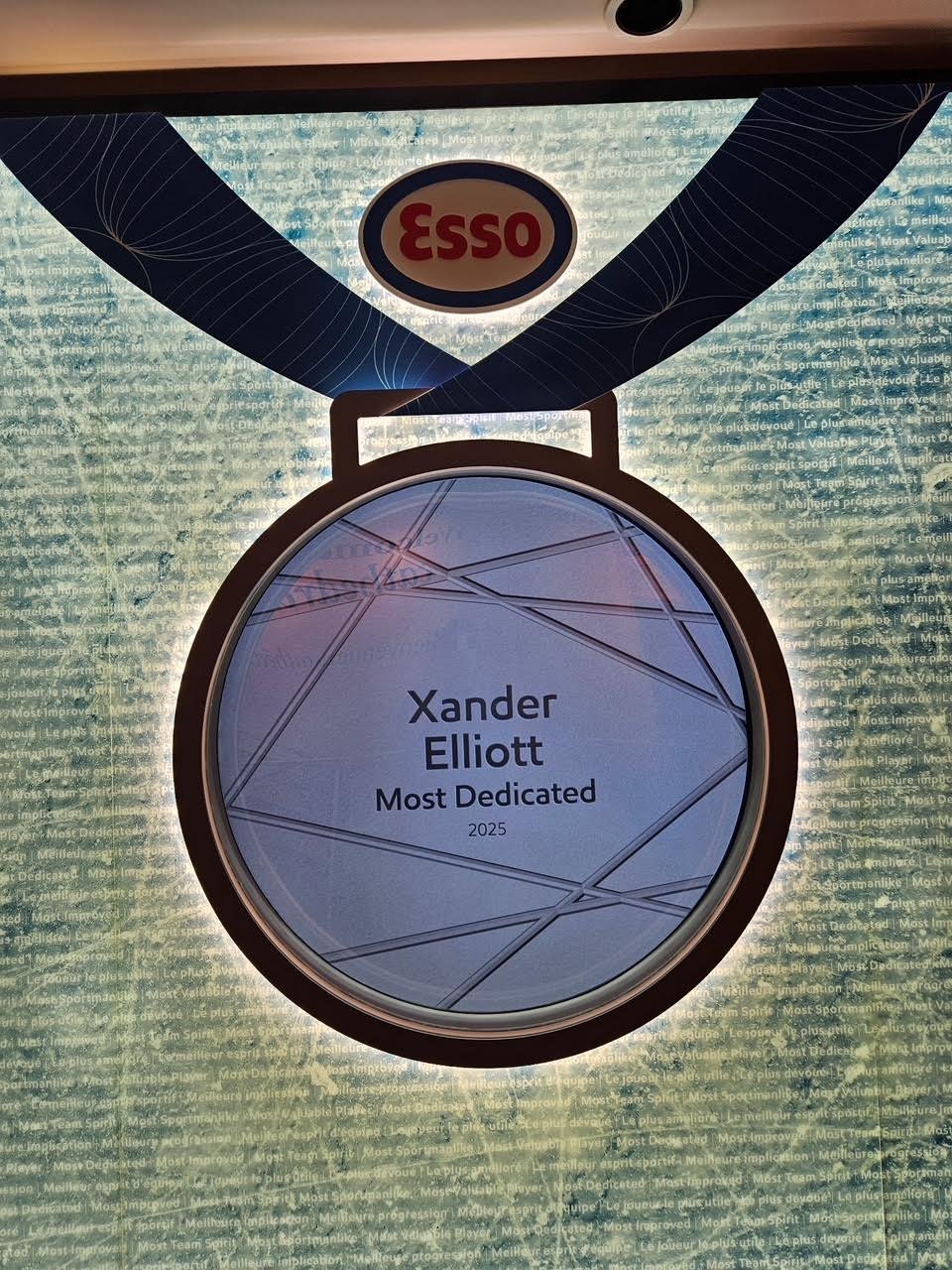 Xander Elliott, performed so well in the 2025 season, he won an Esso award as the most dedicated player on his 11UI team, and his name hangs a the Hockey Hall of Fame in a digital display in the same building at his great grandfather Chaucer.