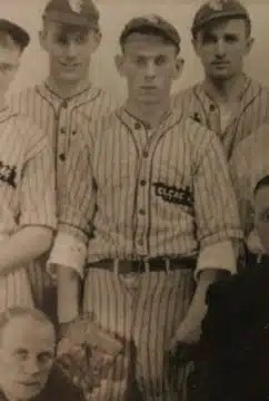 The KBA Senior City League started in 1941. The Canadian Locomotive ‘Locos’ won four straight city championships from 1942-1945. Former OBA champions Vinnie McQuaide and Jimmy Arniel were joined by Joe Corkey, Gord Wood, Cliff Earl, and Arnie Jarrell on the Locos.