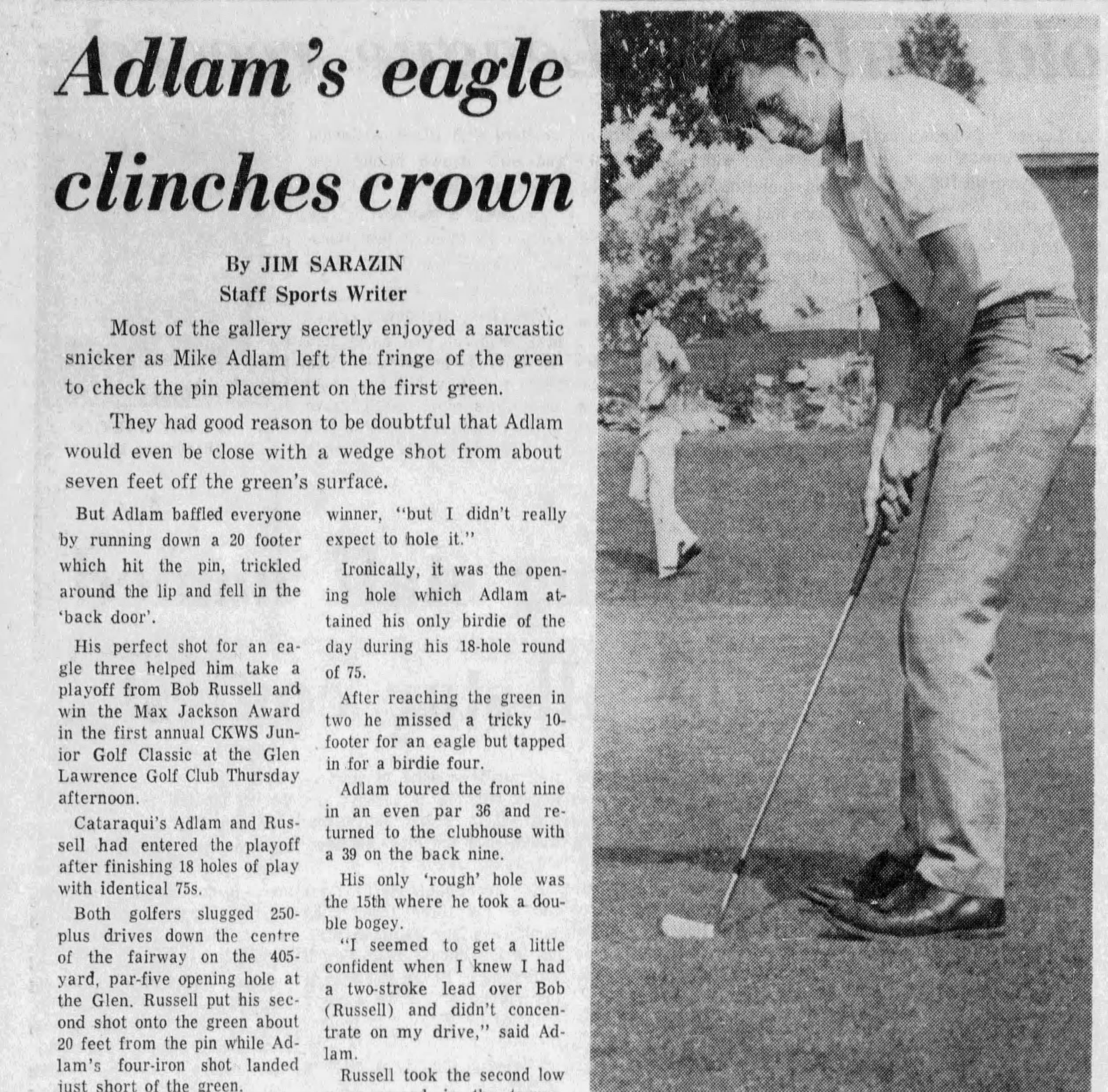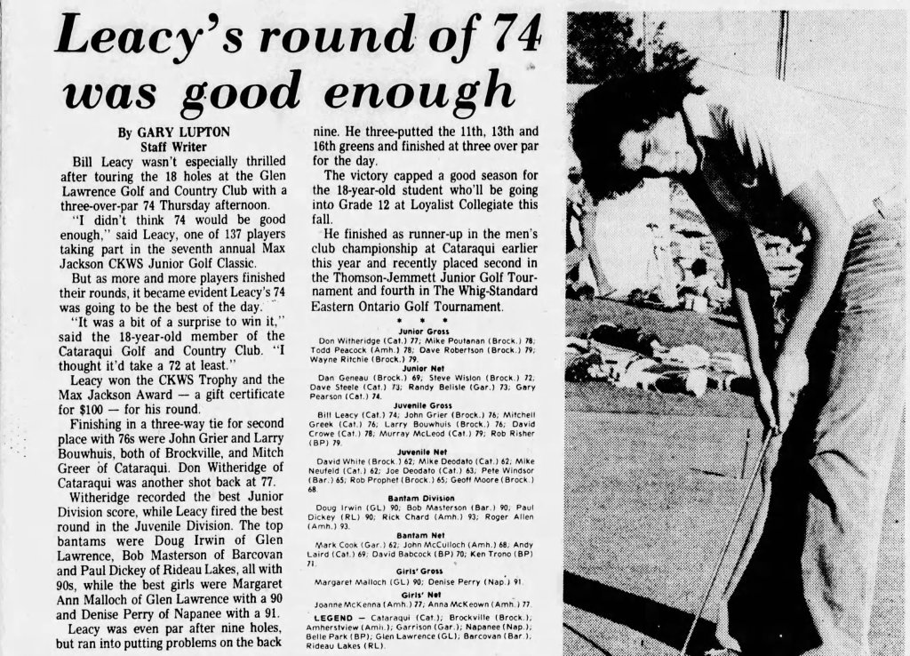 in 1977 at Glen Lawrence, Cataraqui’s Bill Leacy carded a 74 that held up for the win.