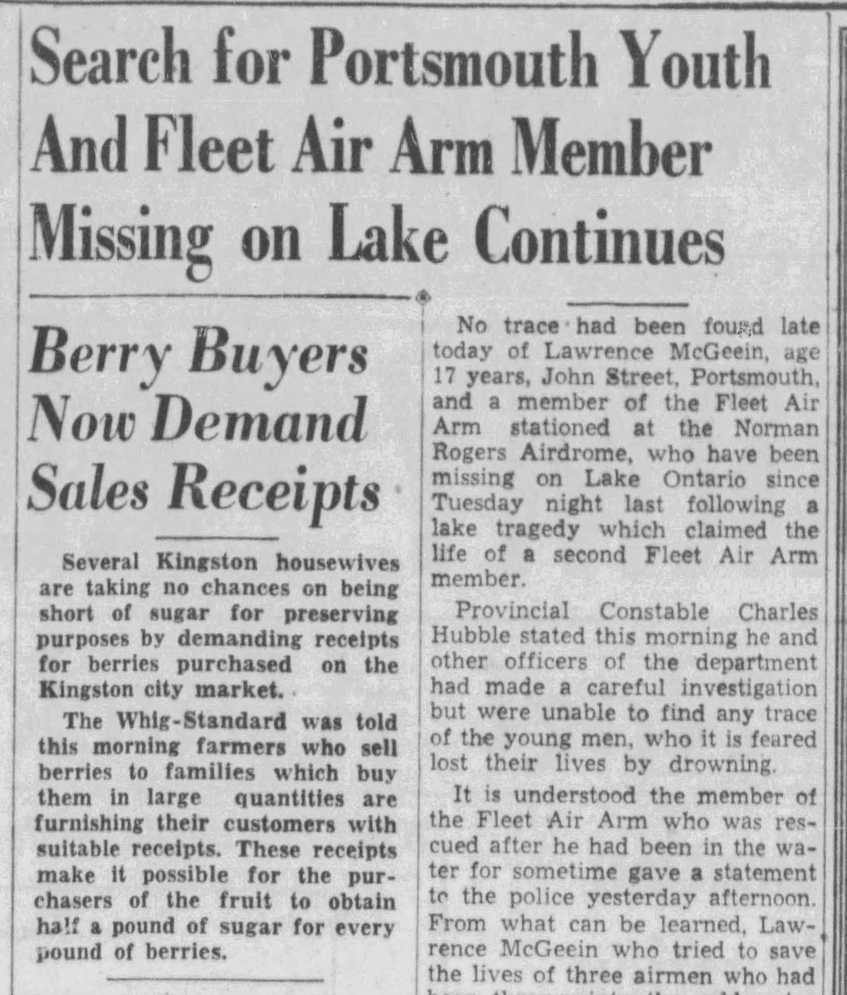 On that fateful night in June, three naval airmen came to Portsmouth Harbour to rent a canoe. They had just arrived in Kingston from Great Britain to train at Norman Rogers airport with the Fleet Air Arm – the aviation branch of the Royal Navy.