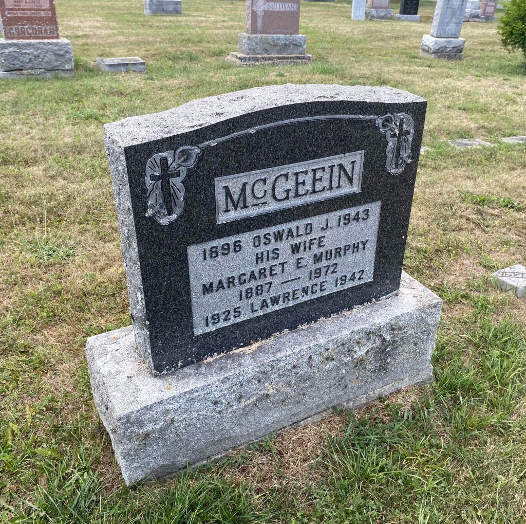 Lawrence McGeein worked at MacLachlan Lumber and left behind his family in Portsmouth, his parents Oswald and Margaret and four siblings. Oswald would pass away a year later in July 1943.