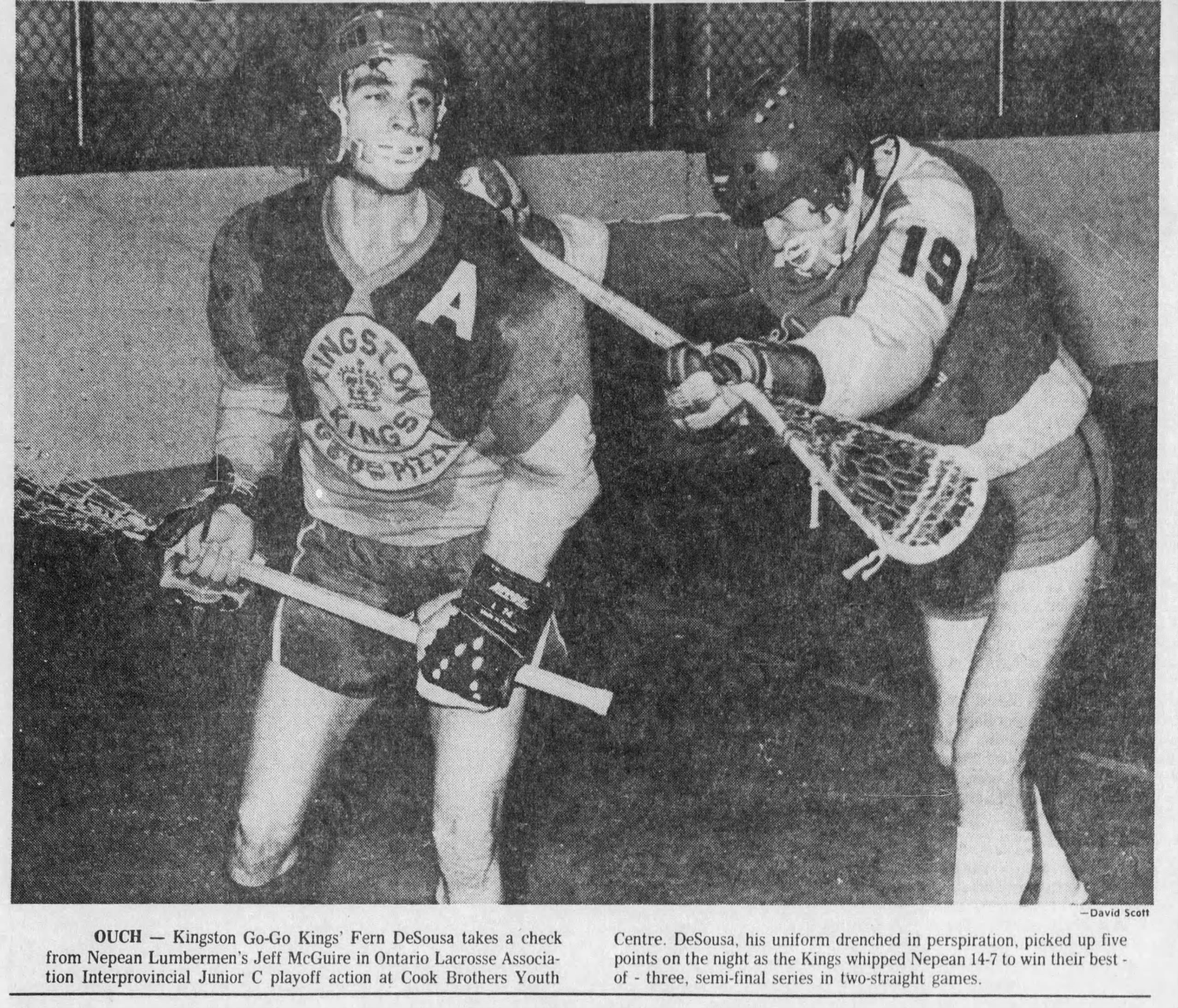 The late Fern DeSousa (left) was a feisty player who could also score for the Kingston Kings junior lacrosse teams in the 1970’s.