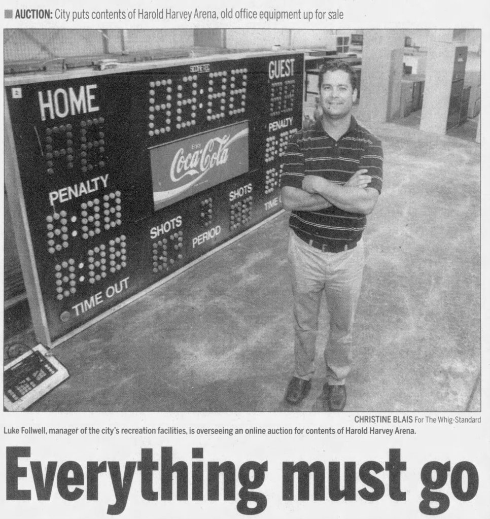 When the new 4-pad multiplex – the Invista Centre – opened in the West End of Kingston in 2008 off Gardiners Road (just a few months after the downtown K-Rock Centre opened), the Cook’s and Wally Elmer arenas were ultimately decommissioned. By 2010 another longstanding neighborhood rink was also closed, the Harold Harvey Arena in Portsmouth shuttered to make room for the Domino Theatre. The Church League had played its games at the ‘Harvey Gardens’ since 1961, originally with no roof and no sides when the rink opened. Having a game ‘snowed out’ was always a possibility in the Portsmouth quarry. The Church League subsequently moved its teams and operations to the Kingston Memorial Centre.