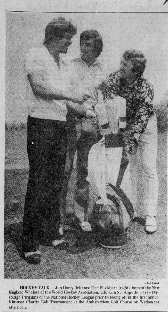 Blackburn at a Kingston charity golf tournament in 1974 with Whalers
