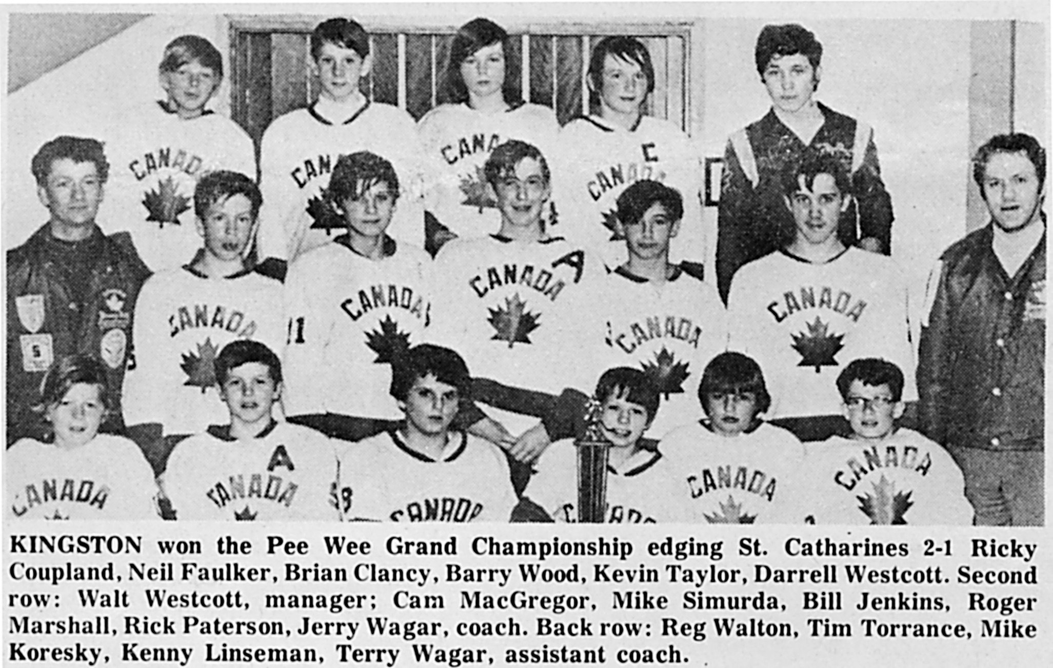 Paterson and Linseman were both named to the tournament all-star team. Linesman played on Kingston’s top line with Bill Jenkins, a great playmaker, and Faulkner, a speedster who could score also goals in bunches. Torrance centered the second line with Simurda and John Gurnsey. Mike Koresky had two 11-year-old rookies with him on the third line, Barry Wood and Kevin Taylor.